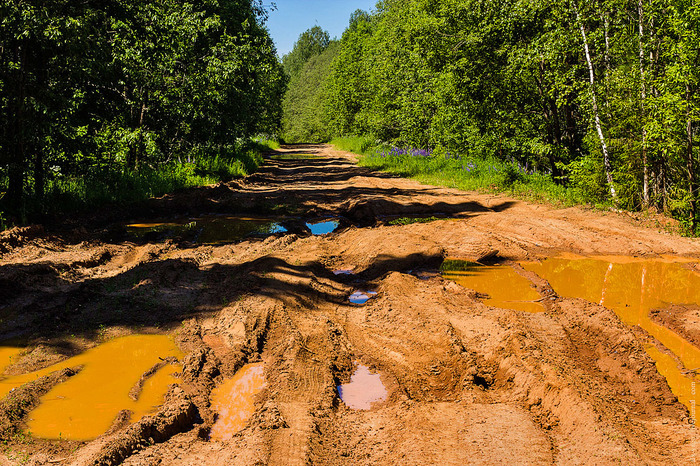 Примерно на середине дороги её характер поменялся, и из глинистой она превратилась в песчаную. Выглядеть она стала гораздо лучше, луж нету вообще, однако ехать по ней не легче, чем по пляжу. То есть, вообще лучше не ехать. Этот участок получил серебряную медаль в рейтинге плохости. По нему я тащился пешком со скоростью около двух километров в час.