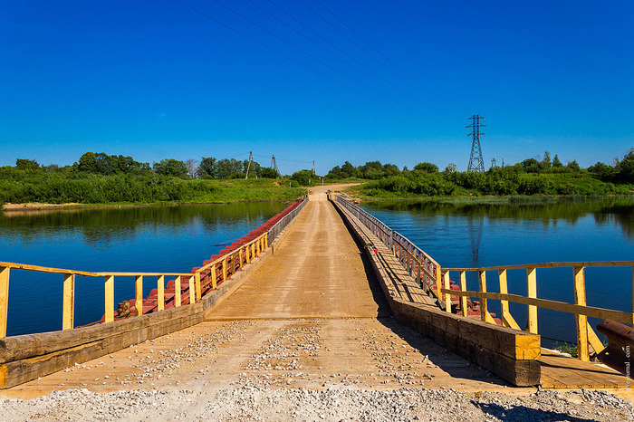 Мне необходимо было узнать, куда отсюда можно уехать дальше, и где есть переправа через Чепцу. Дело в том, что постоянных мостов здесь нет: зимой реку переходят по льду, а летом ставят понтоны. Наконец я увидел одинокого местного жителя, по какой-то прихоти решившего вместо послеобеденного сна поработать в огороде. Мужик рассказал мне, что, по всей видимости, мост навели возле села Сезенево, потому как на днях оттуда приходил грейдер.
