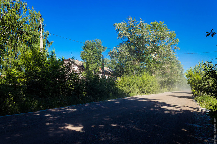 Так вот потихоньку я добрался до слипшихся друг с другом посёлка Мотоус и деревни Целоусы. Это было странное и знойное место прямо на берегу реки Чепцы. Я долго бродил по посёлку, стучался в разные ворота и не находил ни одного человека. Причём место это не выглядело абсолютно заброшенным. Наверное, все жители устроили себе дружную сиесту и беспробудно спали.