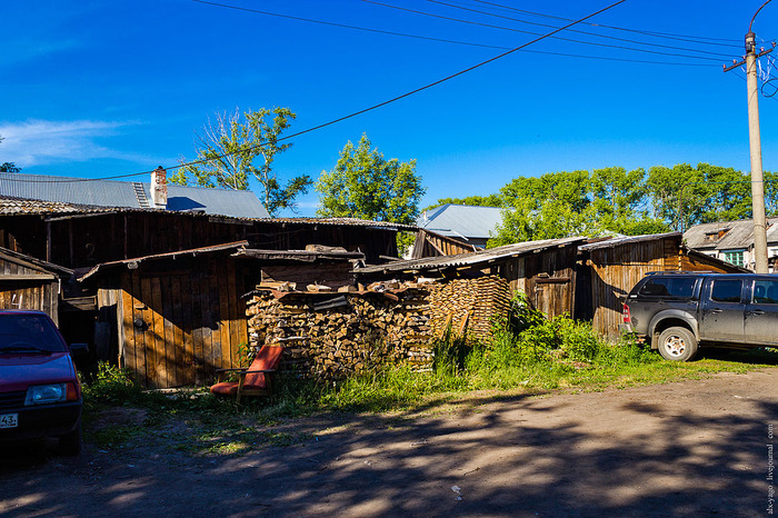 Дома с печным отоплением, поэтому во дворе стоят такие вот дровяники: