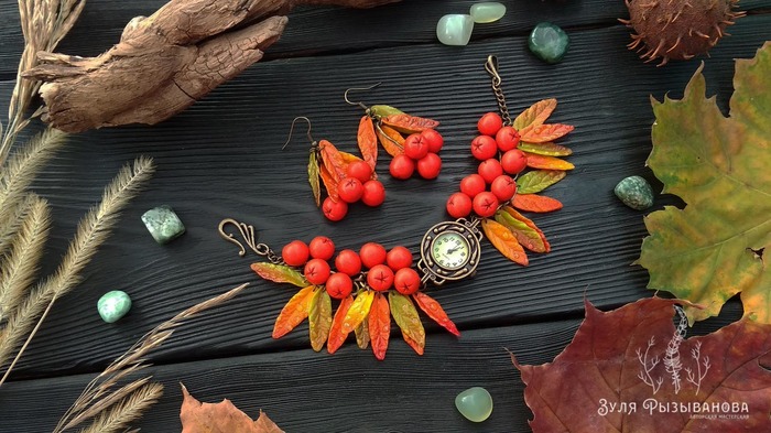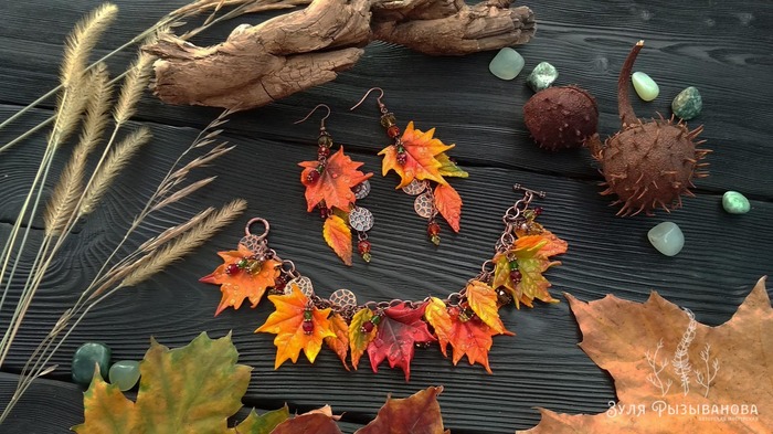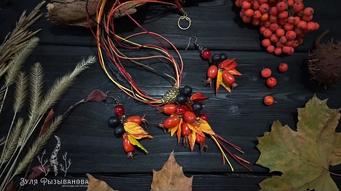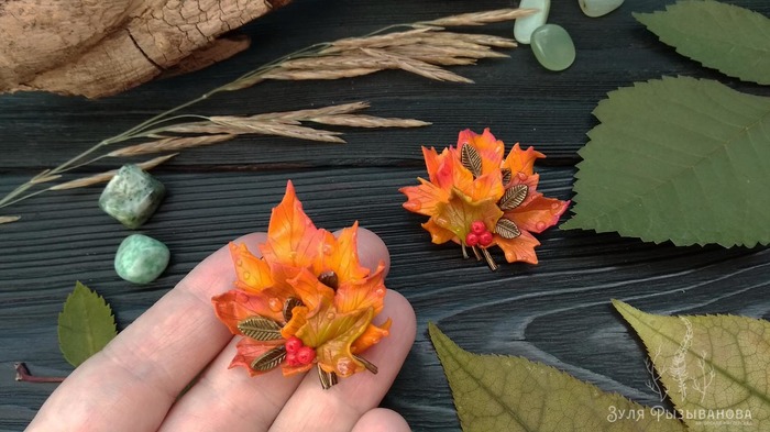 Дело было осенью, было сыро и серо. Но в мастерской то всегда уютно, всегда красочно, светло и радостно. Случился в мастерской "листопад" ))) Ну а я не растерялась, все листочки да ягодки собрала и приспособила в красоту для девушек.