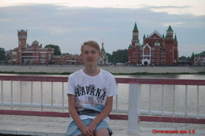 Так чем хорош "оптический процессор"? Нагляднее показать на картинках. Красивая йошкар-олинская набережная нам поможет. Типичные фотки снимаются на примерно единичном зуме как тут:
