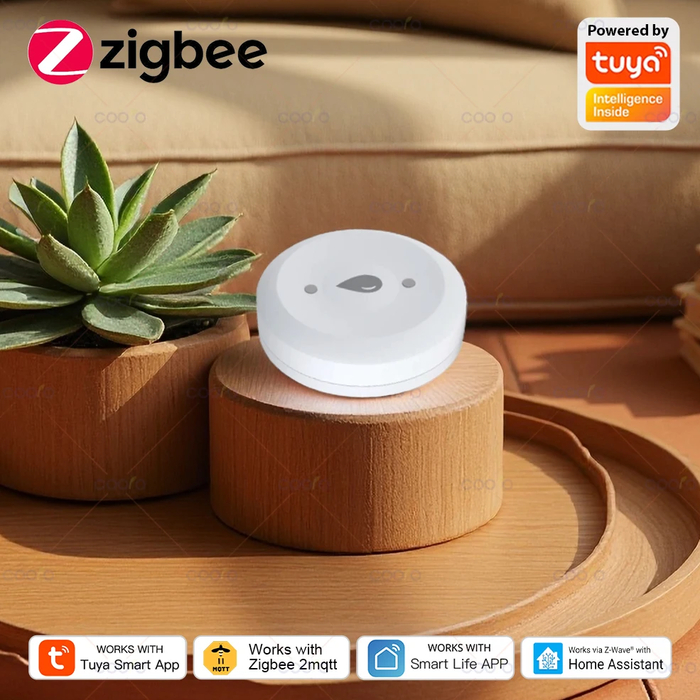 Датчик протечки воды Coolo предназначен для раннего обнаружения аварийных ситуаций в квартире или доме. Устройство реагирует на контакт с водой и мгновенно отправляет уведомление в приложение, позволяя принять меры до появления серьёзного ущерба. Поддержка платформ Tuya и Zigbee обеспечивает интеграцию в экосистему умного дома.