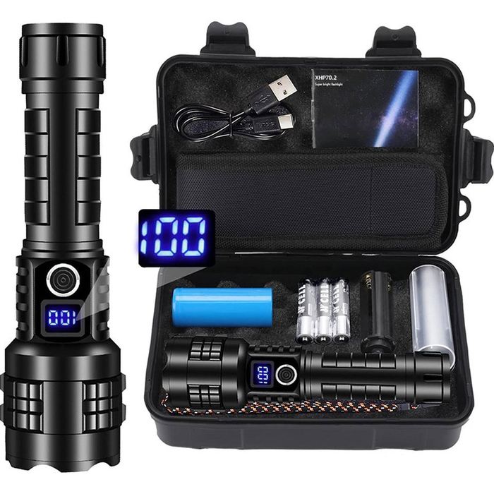 6. Мощный светодиодный фонарик A06 с цифровым дисплеем и аккумулятором 5000 мА·ч