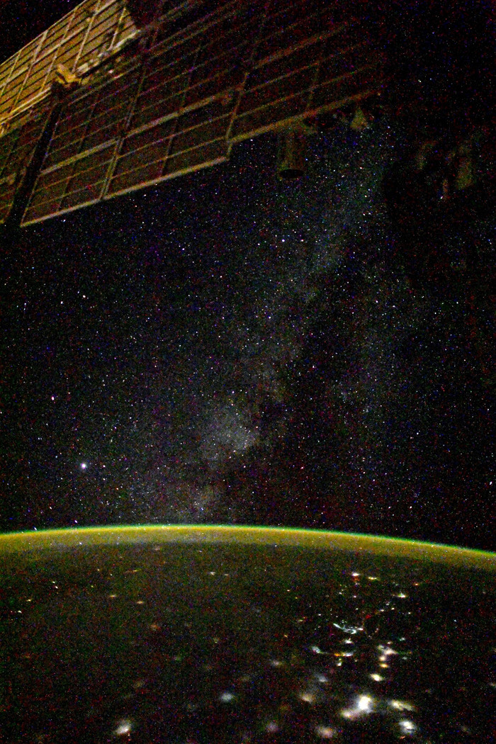 Кстати, обратите внимание на последнюю фотографию. Видите, на ней можно разглядеть разноцветные звёзды? Так вот, это совсем не звёзды, а выбитые пиксели в матрице фотокамеры. Спустя некоторое время после пребывания на МКС космонавты сталкиваются с этой проблемой. А виной тому космическая радиация. Обязательно расскажем вам подробно об этом явлении в одном из следующих постов.