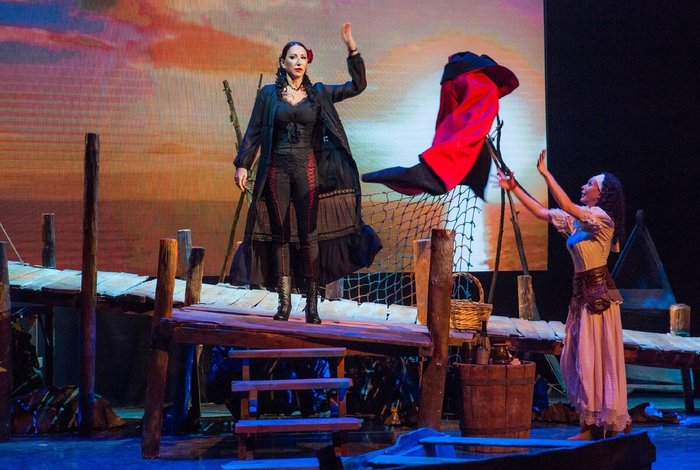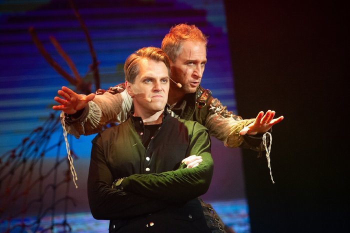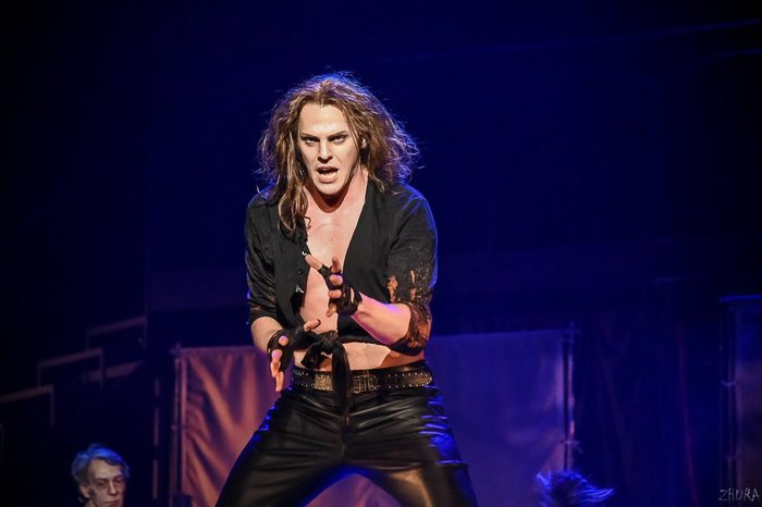 В российской версии вообще свели всё, чтобы сделать из персонажа полноценного визави папы. Поднятие роста артиста до высоты двух метров. Контрастный с папиным костюм. Патлы, которым обзавидовалась бы вся скандинавская метал-сцена. Макияж на грани приличного сценического, а не европейский вариант "я у мамы визажист", вызывающий священный испанский стыд. Работа с диапазоном повыше, без надтреснутого блеяния, которое популярно у австрийцев, но данному персонажу не особо идёт. Ну и сам каст, оказавшийся у нас крайне достойным, а в одном воплощении (другого слова не подберёшь) - и вовсе непревзойдённым с огромным отрывом.