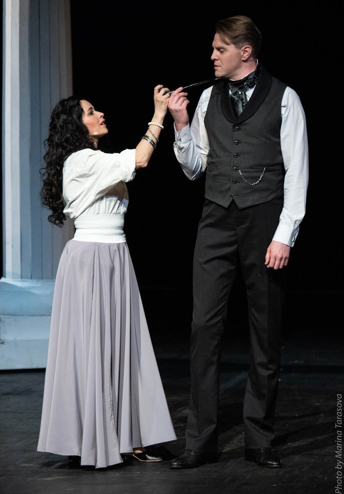 А в Москве я впервые увидела Ожогина в музыкальном спектакле по "Драме на охоте" Чехова. Костюмы, конечно, человечество как будто специально для него придумало.