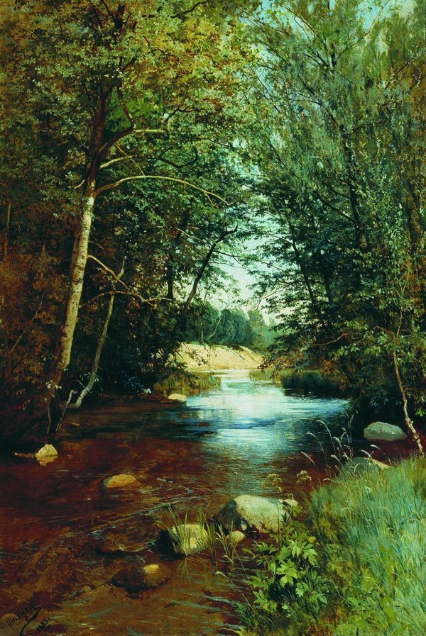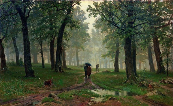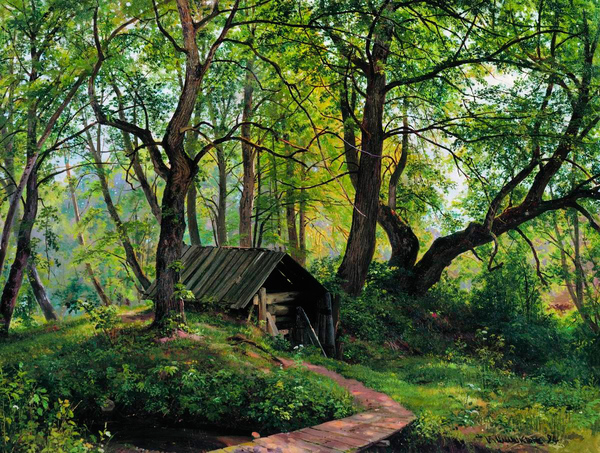 Иван Иванович Шишкин родился в Елабуге Вятской губернии в семье купца второй гильдии Ивана Васильевича Шишкина. Иван Васильевич — автор изданной в 1871 году в Москве «Истории города Елабуги» — за заслуги в области археологии удостоился звания члена-корреспондента Московского археологического общества. Заметив увлечение сына родной природой, он направил молодого Шишкина учиться живописи. Окончив Академию с Большой золотой медалью Шишкину давалось право на заграничную стажировку. Но за границу он ехать не спешил, вместо этого отправившись в Вятский край. В родных местах Шишкин неустанно работал. К этому времени художник уже определил область применения своих сил — только Родина, только пейзаж.