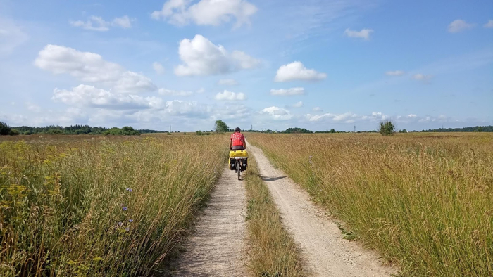 Сегодня по плану у нас крепость Ивангорода. После хорошего отдыха и утренних макарон с сыром едется очень бодро, первые тридцать километров пролетаются совсем незаметно. Остановились подумать у небольшого грунтового отворота. Город, в который мы едем, приграничный, стоит на небольшой речке Нарва, она же служит границей. Сто метров моста, и ты в Эстонии, поэтому нужен пропуск на въезд в погранзону, и такая бумажка у нас есть, но ехать решили всё-таки огородами. Во-первых, срезали крюк в десяток километров и не пришлось бы мотаться вперёд назад по одной и той же дороге, а во-вторых, просто из-за нелюбви ко всяким кордонам и препонам.