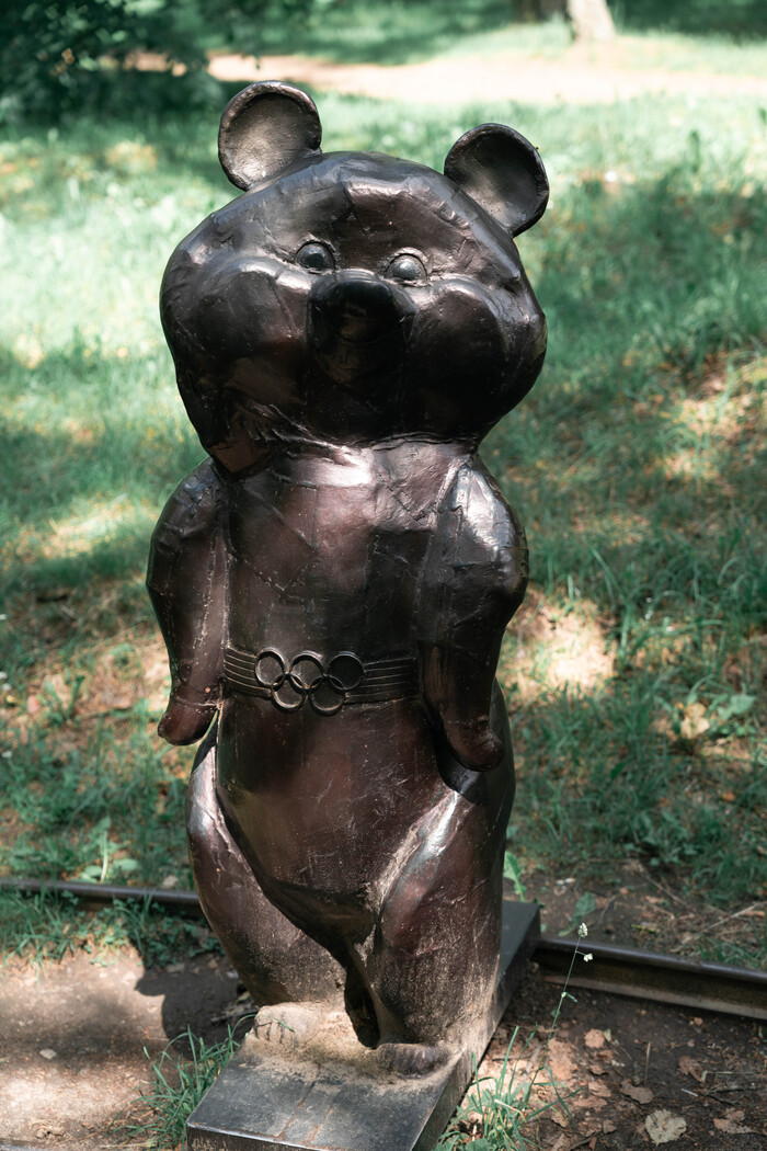Восемь лет скульптура никому не мешала, но осенью 2023 какие-то особо одаренных чудо-художники разрисовали его своими каракулями.