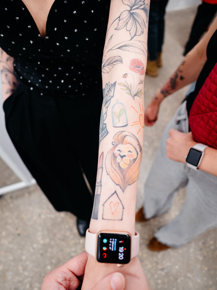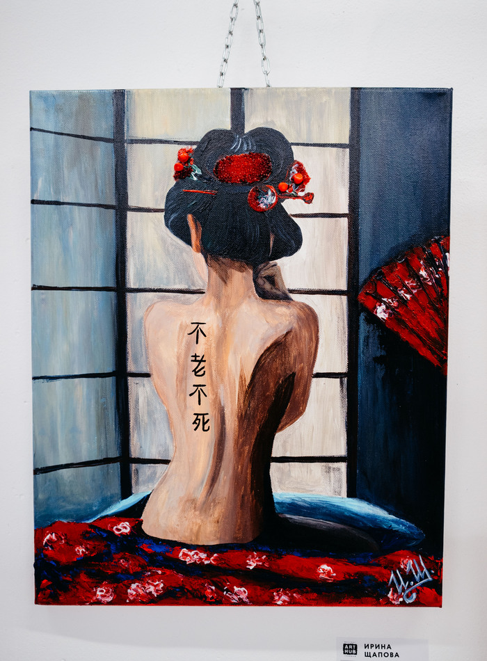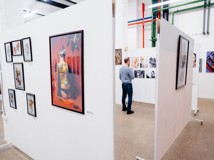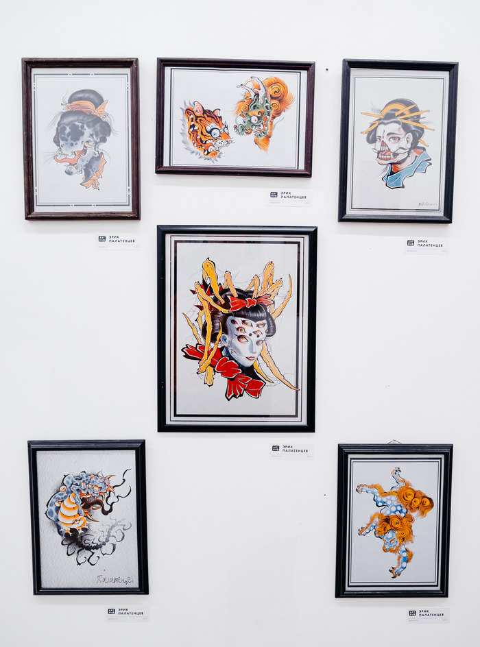Для этого они открыли экспозицию «Тело как холст», где представлены картины, фото, эскизы на холстах, бумаге искусственной и настоящей коже моделей. И безусловно, можно стать свидетелем творения новых шедевров в режиме реального времени – как постоянных, так и временных. В некоторые из дней рядом с этими произведениями будут бить гостям татуировку по специально подготовленным к эскизам. На открытии такого не было из-за очень большого количества гостей.