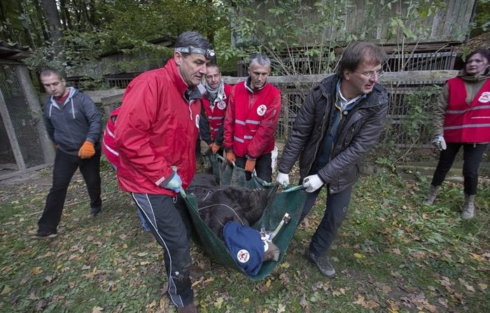 "Кроме того, он страдает от нехватки веса вследствие скудного рациона. Кажется, он существовал на одном лишь хлебе и кукурузе, но его внутренние органы и зрение не пострадали. Он по-прежнему здоров", - прокомментировал Геритц состояние медведя.