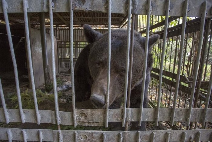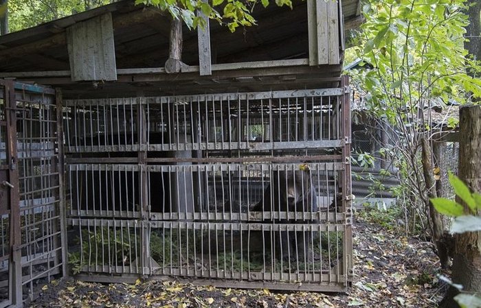 Медведь по кличке Тайсон оказался в клетке еще в 2001 году, когда охотники застрелили его мать неподалеку от украинского города Ивано-Франковск. Животное держали на цепи, морили голодом, и использовали для притравки охотничьих собак. Когда активисты добились освобождения медведя, он был страшно измучен и весил всего 220 кг.