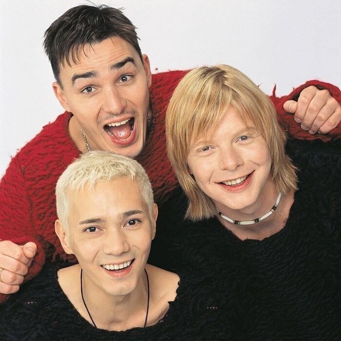 Участники группы «Иванушки International» позируют на отдыхе, 1990-е годы.