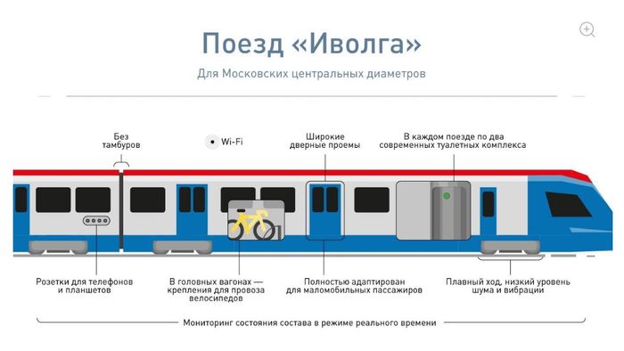 В поездах поддерживается комфортный микроклимат и работает система обеззараживания воздуха. Есть крепления для велосипедов, точки доступа к Wi-Fi. В каждом вагоне предусмотрено по 16 USB-розеток для зарядки гаджетов.