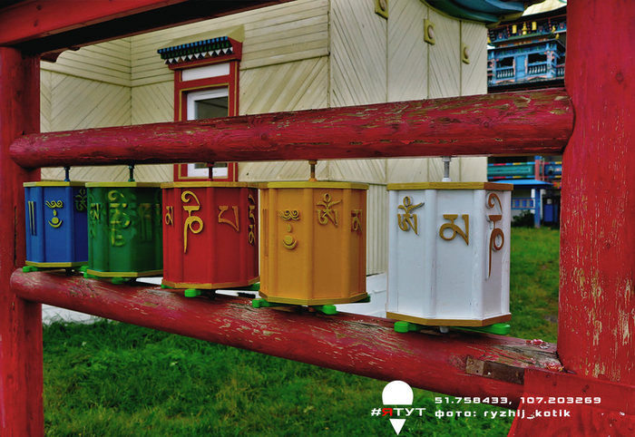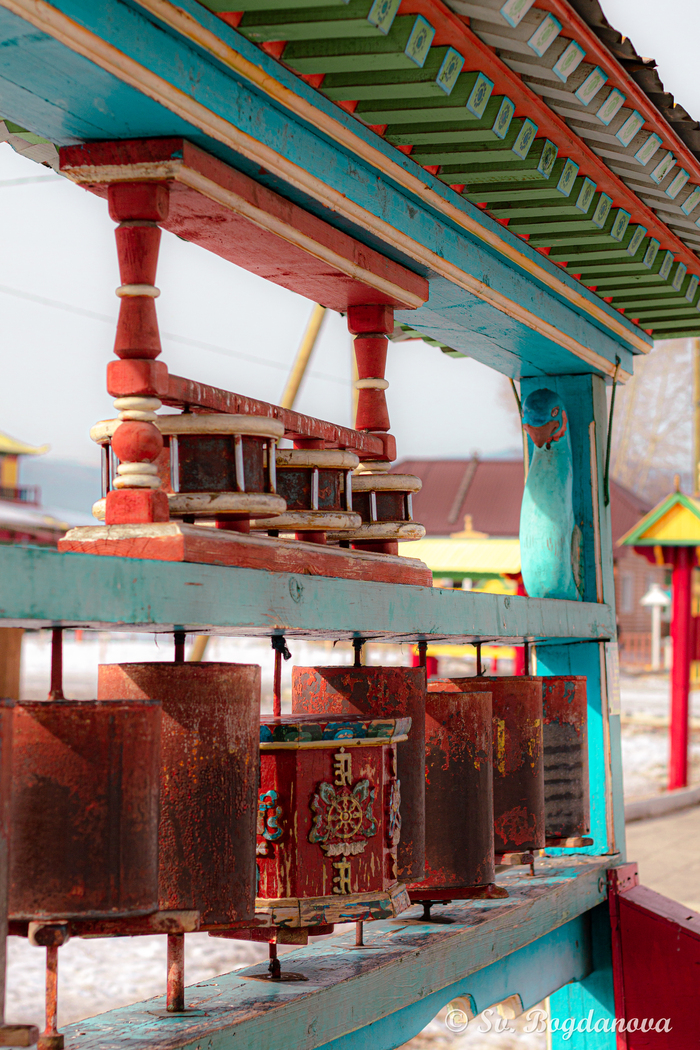 Когда крутишь молитвенный барабан хурдэ, где-то внутри него, нанизанная на ось, "читается" мантра. Деревянные, металлические, маленькие и в человеческий рост, со стершейся краской, недавно обновленные — ежедневно их касаются тысячи рук, и "звучит", не прекращается молитва. При входе в буддийский монастырь — дацан, нужно пройти круг почитания — гороо. Раскрутить десятки барабанов. Считается, что во время прохождения человек накапливает добродетель. Связывается физическое и духовное.