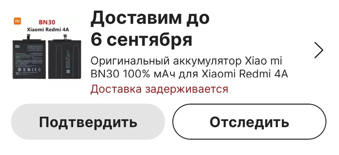 Заказал я в конце августа аккумулятор, написано было доставка до 6 сентября, меня устраивало.