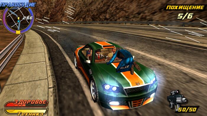Эта механика делает Pursuit Force не только быстрым, динамичным , но и дает подумать как распределить ресурс справедливости , подлечиться и пожертвовать уроном или наоборот , прыгать на новую машину , без риска для здоровья или протянуть еще на этой?