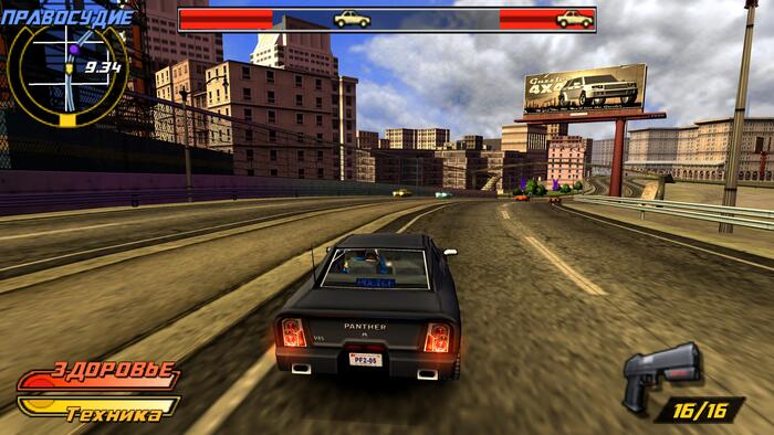 Pursuit Force — это не просто гонка, а полицейский экшен на полной скорости, где всё решает агрессивное преследование и зрелищные разборки. Главный герой — не просто хороший водитель или стрелок, он способен прыгать с машины на машину прямо на ходу, устраняя преступников и захватывая их транспорт. Вся механика построена вокруг быстрого перемещения между автомобилями, стрельбы и постоянной погони за справедливостью.