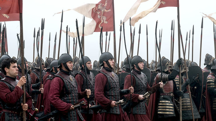 Особую сложность вызывают костюмы и реквизит. Почему это важно? Джордж Мартин создавал свой мир с оглядкой на наше средневековье, а ценность казалось бы обычных для нас вещей была значительно больше в то время. Это сейчас можно пойти в магазин и купить себе одежду, в то время все было значительно сложнее. Чистая красивая, богато украшенная одежда была доступна единицам. И дело было не только в деньгах, но и в статусе (некоторые сословия просто не имели право носить определенные виды одежды), а также в доступе к тем мастерам, которые изготовят для тебя тот или иной предмет материальной культуры.