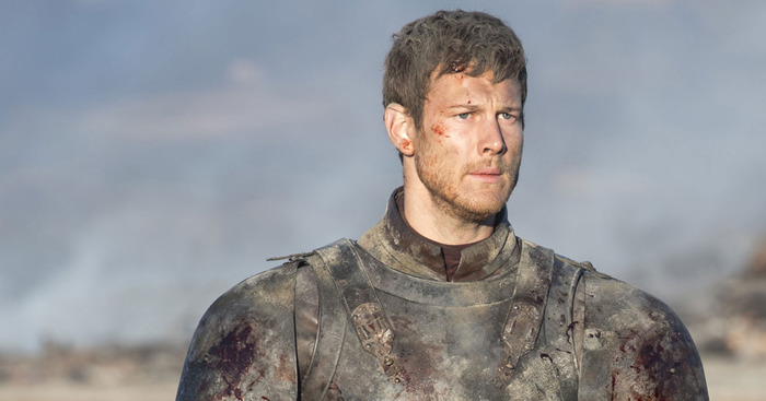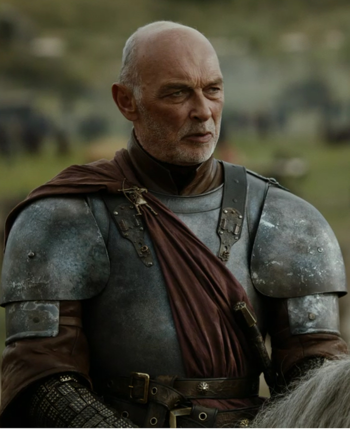 Сер Алистер Торне ( в металлическом ламелярном доспехе) смотрит на юного Тарли как на любителя кожаных штанов