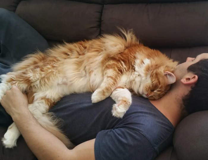 Всем привет. Новости такие. Теперь Милун живёт на ингаляциях. Две штуки - одна утром (пульмикорт), одна вечером (бактериофаг). Живёт он в моей комнате, где никогда не будет никаких котов. С основном все время спит, даже начал приходить обниматься. Много мурчит и много ест.
