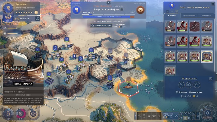 Фишка в том, что в Humakind есть культуры-милитаристы, у которых уровень военной поддержки высокий по умолчанию. Подобные культуры, сугубо на морально волевых качествах, способны принудить врага к сдаче, даже если воюют не слишком успешно. У них банально много военной поддержки. Отдельные сражения могут замедлить, но не переломить эту тенденцию. В отличие от захвата городов. Оккупация территорий сильно бьёт по военной поддержке и проиграть войну, захватив половину вражеской страны, всё же, надо умудриться. А вот растратить боевой дух в долгих осадах и прифронтовых стычках — это запросто.