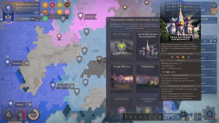 Мало того в Humankind есть ещё и бестолковое правило — за одну эпоху можно выкупить лишь по одному чуду. Это же прямое оскорбление всех жадин. Разработчики хотели, чтобы никому не было обидно, чтобы всем досталось по чуду! Но с какого фига они этого хотели-то!? Захапать все чудеса — в этом же главная фишка игры. Кто-то скажет, что концентрация чудес в руках одного игрока нарушит баланс, но… блин, вы поиграйте в Humankind и сами поглядите на этот «баланс» (к слову, реально поиграйте, мой обзор выходит весьма критичным, но игра реально заслуживает внимания).
