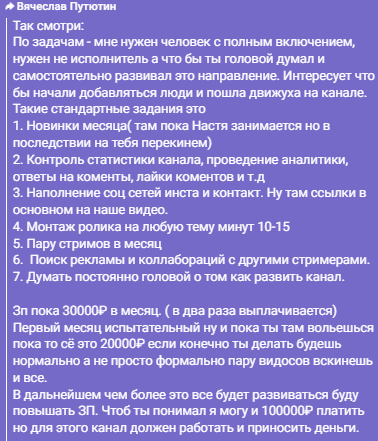Задачи кратно изменились, что уже должно было несколько насторожить. А уж расплывчатое «Постоянно думать головой, о том, как развивать канал» должно было вообще стать, как сейчас модно говорить, так называемым red flag, но я взялся.