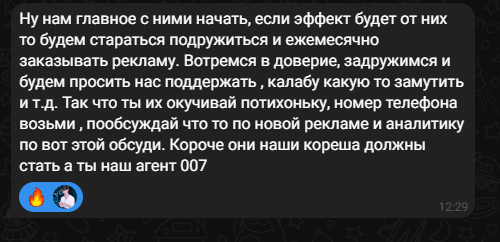 Начальник со временем начал предъявлять претензии, что подписчики на канал привлекаются не так активно, как должны. На это я предложил купить рекламу у разных блогеров, разработал рекламное ТЗ, цвета бренда, текст рекламной интеграции и связался с каналами. После чего... был выделен бюджет на ОДИН (!!!) преролл, а какие-то мелкие рекламные активности, в духе покупки рекламы в ВК оплачивал совершенно другой человек из своего кармана.