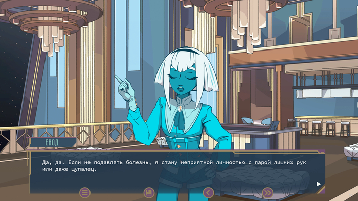 Не фанат такой цветовой гаммы, когда я запустил игру, первой ассоциацией был мультсериал Винкс. Ядовитые, яркие пурпурные, розовые и лазурные цвета. Объекты пестрят и смешиваются... но буду непредвзятым: это отличная визуальная новелла. Разговоры не затянуты и достаточно часто перемежаются мини-играми и головоломками. Вся побочная информация складывается в журнал, а игроку подаётся только самое важное и нужное. Очень хорошие голоса озвучки, много анимированных сцен, фоновая музыка отлично перестраивается в зависимости от ситуации и самого перехода почти не замечаешь. Сюжет? Достойный, это не просто ми-ми-ми история, а полноценный рассказ с поворотами, харизматичными героями и элементами триллера/хоррора.