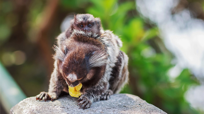Эти маленькие обезьянки, весом около 250 грамм, обитают в лесах Бразилии и живут в семьях до 15 особей. Только альфа-самка рожает, а другие члены семьи помогают ухаживать за детёнышами.