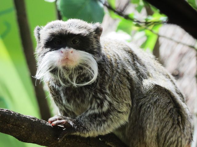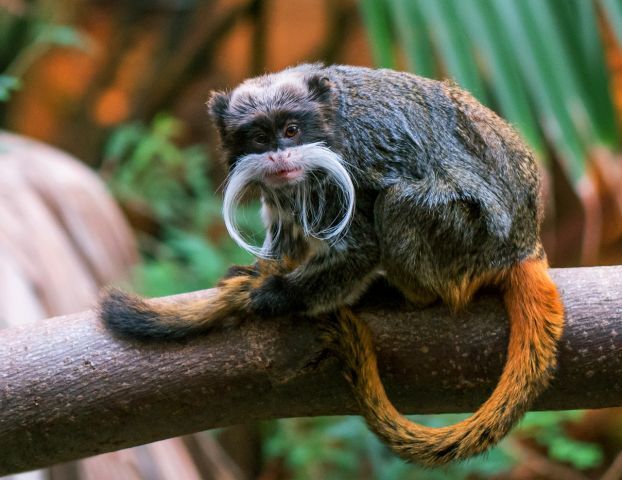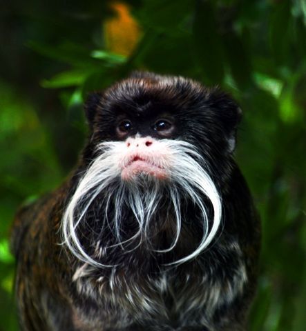 Это небольшие широконосые обезьянки, чей вес не превышает 500 граммов, а длина тела - 25 сантиметров. А главным украшением императорского тамарина являются, безусловно, его роскошные белые усы. Порой усы и борода примата настолько длинные, что свисают до самого живота. Зачатки их можно увидеть даже у новорождённых детёнышей.