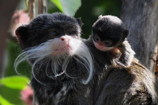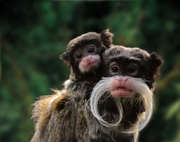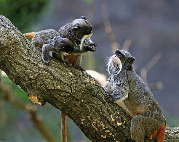 Императорские тамарины – удивительные создания во всем. Этот вид игрунковых обезьян прославился не только своими шикарными белыми усами, раздающимися в разные стороны, но и особой социальной иерархией в стае. Они живут группами, из 8-15 особей. Возглавляет стаю самая старая и опытная самка, являя нам образец настоящего «матриархата», за ней в иерархии следуют самки помладше, а вот самцы стоят на самой последней ступени и выполняют роль добытчиков питания, воспитателей и носильщиков детенышей.