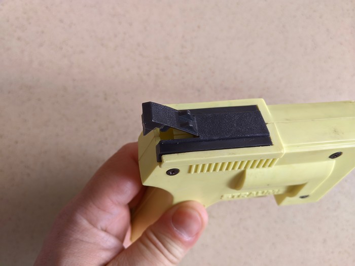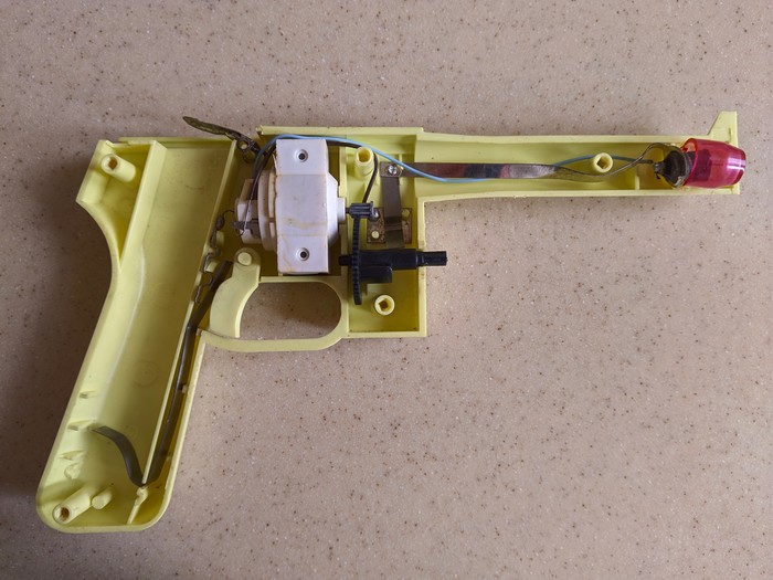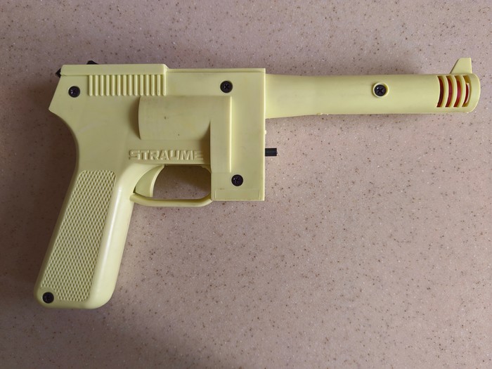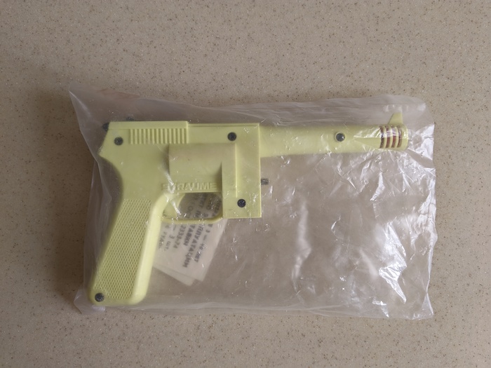 Он весело стрекотал и моргал красной лампочкой при нажатии на спусковой крючок. Не помню, когда его выкинули, но он к этому времени уже был совсем сломан.