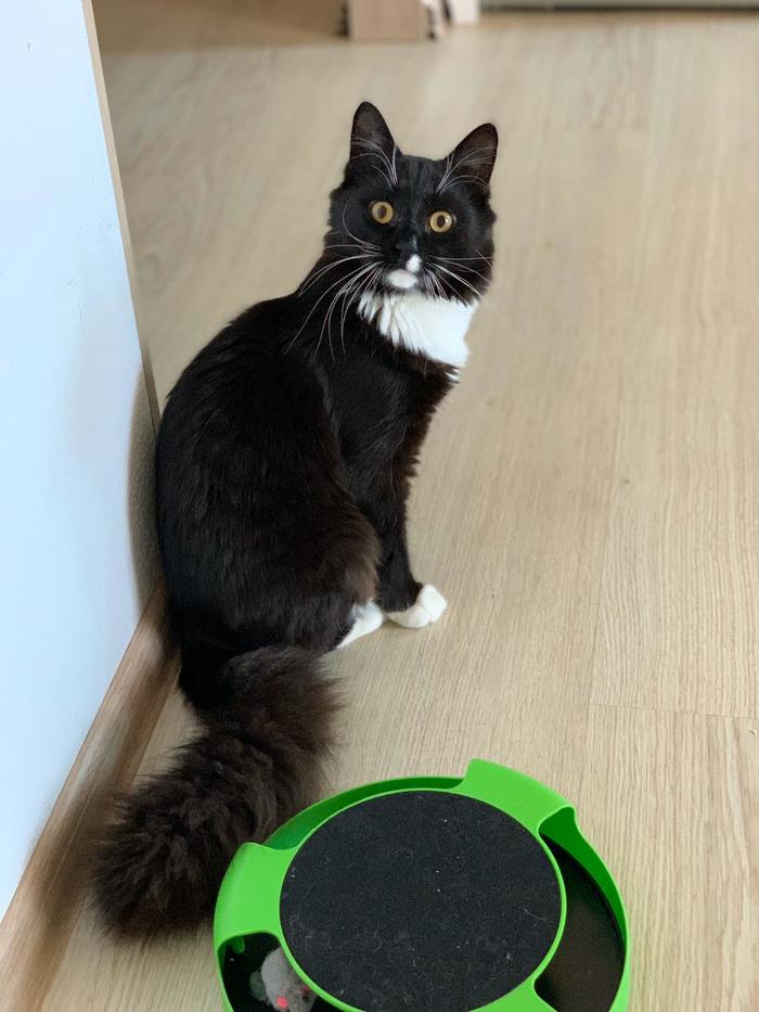 Теперь кот сам приносит котопалку в зубах, когда захочет играть.