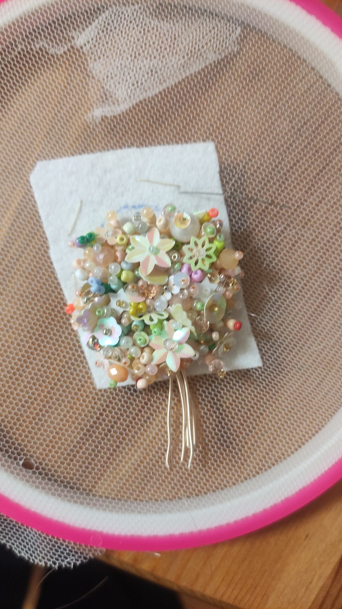 А еще я добралась до светящегося в темноте бисера. Ловец "Зимняя сакура", с авторской фигуркой Евгения Хонтора
