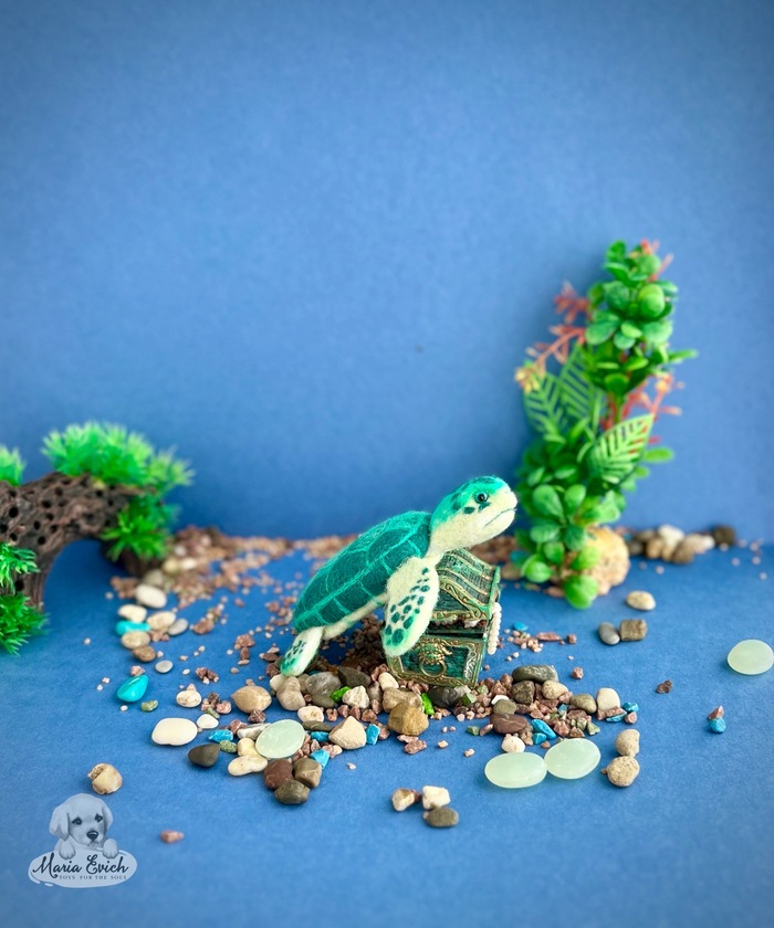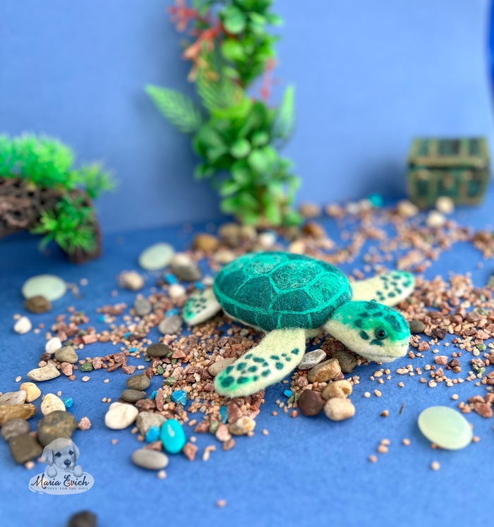 Вот такая морская красотуля у меня родилась, выполнена из овечьей шерсти, техника сухое валяние, глазки стеклянные, тонирована сухой постелью.