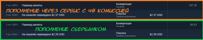 Принято решение пополнить баланс на 200 рублей через сбербанк и на те же 200 рублей с какой-нибудь площадки, которых в интернете множество. Надпись на картинке пополнения на стороннем сервисе, к слову, была 4% (не знаю, насколько ЭТО правда, тут уже проверить не удастся, т.к. курс доллара в стиме разнится от сайта к сайту).