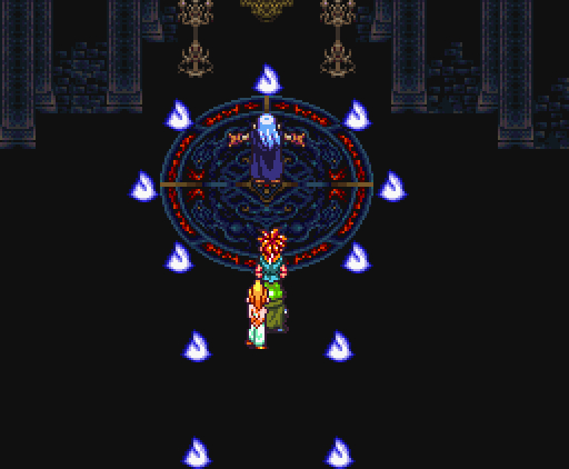 ...Хроно постепенно пробуждается из тёмного небытия, прислушиваясь к мелодичному звону колокола Лин... и голосу Марл, которая пытается его разбудить.