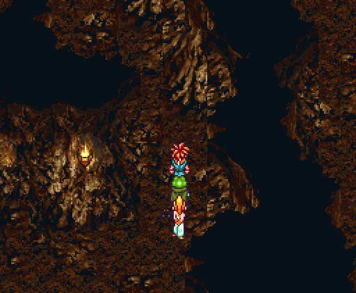 Кроме того, они тренируются: первым делом, пробуют совместить огненную магию Лукки и *Шаробковый удар* Эйлы. Получается *Огненный удар*, когда Лукка поджигает Эйлу, и затем уже та прыгает на противника, будто крутящийся огненный шар, к его ужасу. Эйла оттачивает свою "кошачью атаку", кусаясь и царапаясь в схватке. А если перед этим Хроно зарядит её электричеством, получается *Громовое Кусание* :-)