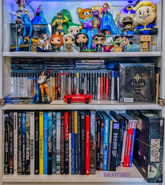 У меня коллекция не ретро, хотя играю со времен сеги и денди, активно начала собирать диски и фигурки с 2011 года. На пс5 дисков мало, и уже отчасти переехала на пк гейминг, но коллекция фигурок и книжек время от времени пополняется )