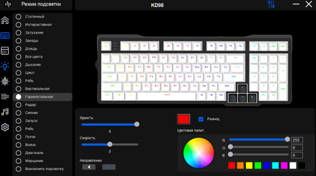 · Цвет подсветки клавиш – RGB