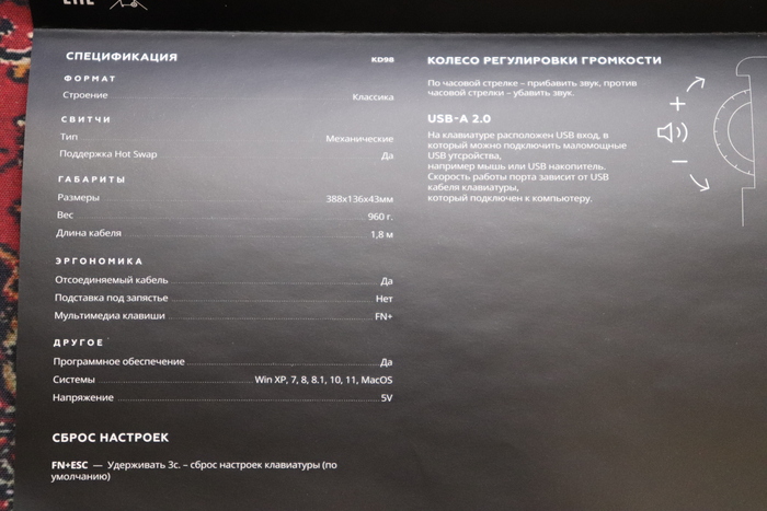 Благополучно скопировав характеристики с сайта из трёх букв, перейдём к рассмотрению непосредственно самой клавиатуры, дополнительные характеристики сможете найти на любой торговой площадки, я указал основные.