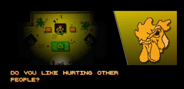 Я делю его на два слоя: поверхностный и глубокий. Большую часть времени, как ни странно, мы взаимодействуем с поверхностным. Джекет просыпается в своей спальне, идет к автоответчику в гостиной и там получает зашифрованные послания. “Доставить печенье по адресу”, “побыть няней”, “разобраться с вредителями”. Итог такой “подработки” один - убить всех. Однако хочу отметить, что разработчики подошли креативно к подаче этих заданий. Интересно вникать в тайную суть каждого послания, и я чувствовала себя местным Джоном Уиком, когда приходила забирать награду за каждое.