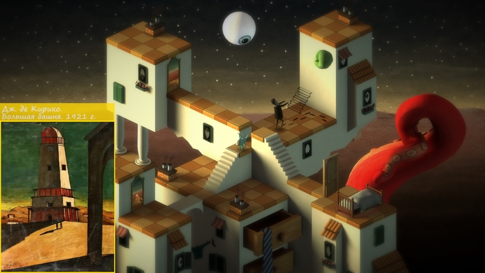 Например, разработчики игры Back to Bed используют цветовую гамму известного художника Джорджо де Кирико