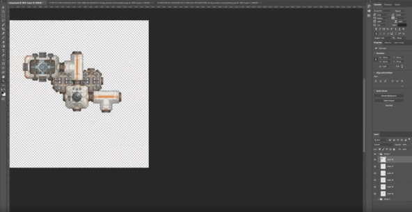 Уже был сделан крутой фон и его подсветка от свечения корабля. Всё начинало быть похожим на игру. Но я столкнулся с штукой под названием "оптимизация". Все блоки были сделаны полигонами, в том числе и их анимация. Всё в совокупности давало огромное количество "draw call" что снижало FPS до абсурдных показателей. Как я только не тыркался, чтобы оптимизировать всё это... Если с draw calls проблему решить удалось (путём объединения конструктора в mesh), то вот с prims мои старания были безрезультатны. Всё сводилось к тому, что необходимо запекать всё в спрайт, а это ломало все анимации и всю красоту которую я так старался сделать. Что я только не перепробовал с этим строительством... И общий атлас и переиспользование одной текстуры... Даже с шейдером поверх и с картами глубин, это смотрелось так, будто бумажный вырезанный самолётик ползёт по тёмному фону. После долгих мучений было принято решение отказаться от стоительства и перейти в спрайтовую графику.