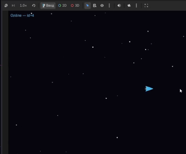 Первые наработки выглядели как просто треугольник с включающимися двигателями на фоне точек :)