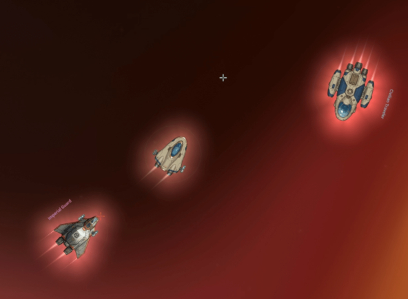 Спрайты мало того, что смотрелись куда сочнее, так еще и тратился всего 1 Draw Call и незначительное количество Prims на один корабль, что уже позволяло разворачивать масштабные перестрелки (Что и требовалось от производительности в моих хотелках)