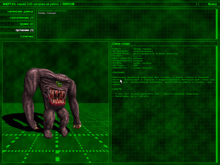Подведем итог: сюжет тут состряпан на коленки. Есть пояснение к каждому уровню, а также описание монстров или оружия.